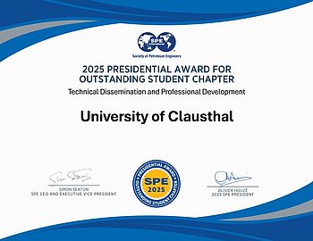 We are proud to announce that the TU Clausthal SPE Student Chapter has been selected to receive the 2025 SPE Presidential Award for Outstanding Student Chapter in the Technical Dissemination and Professional Development category!